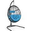 Costway Metal Egg Swing Chair with Stand and Blue Cushion