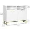 Quickly add that needed storage and get your kitchen clutter-free with a HOMCOM kitchen sideboard. Its sleek modern design with golden elements adds something different to your home space. This buffet sideboard provides a versatile storage solution with two cabinets with inner shelving and 2 open cubes. Additionally, the adjustable shelves suit items of different heights. To keep your kitchen tidy and clean, bring a dining room cabinet home with HOMCOM.