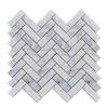 This backsplash tile is all marble with a herringbone pattern. It offers a vivid visual appeal and cascading. It measures 12.5" x 11.6" in white and grey colour. Comes in a box of 10 sheets that covers 10 sq. ft.