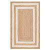 - Natural woven rug with striped border pattern