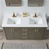 RAINLEX 60-in Freestanding Double White Rectangle Sink Bathroom Vanity with Quartz Top -Grey