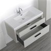 Sleek composition meets purpose with this robust Streamline vanity set. The integrated ceramic sink on this floating vanity will give any bathroom a stylish and current feel. The set includes 2 spacious cabinets with soft closing doors, as well as 2 large