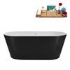 Streamline 59-in Freestanding Oval Soaking Tub w/ Matte Black Drain - Glossy Black
