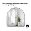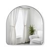 The Hubba mirror brings a unique arch shape to the standard mirror. Featuring soft curves and a thin metallic finished rim, use Hubba in your entryway, bedroom or other living spaces to add a decorative touch, while instantly brightening your space. it measures 34.25 x 1.13 x 36.25-in with hardware included for mounting on the wall. Anti-tip hardware is also included for leaning the mirror.
