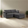 The Long Beach Small Modular Sectional is perfect for compact spaces without compromising on comfort. With deep, wide seating and ultra-soft feather-and-fibre-filled cushions, it’s ideal for relaxed lounging. The included ottoman can be placed on either end to create a chaise, while the modular design allows for flexible configurations to suit your space. Built with a sturdy pine and plywood frame and finished in soft fabric upholstery, this sectional is made to last. Removable cushions and plastic legs complete the clean, modern look.