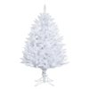 Vickerman 4.5-ft x 36-in sparkle white Spruce artificial Christmas tree with 421 PVC tips, 250 warm white Single Mould LED lights, and a white cord. A wonderful alternative to the traditional green Christmas tree, this brilliant tree comes with warm white LED Italian mini lights, has white PVC tips on metal hinged branches, and on/off step switch, and a metal tree stand is included.
