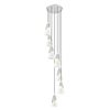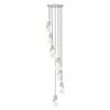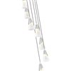 A spiralling descent creates a compelling profile for this modern seven-light chandelier. Artisan glass adds icy elegance with a swirled abstract pattern, while curvy metal shrouds amp up the sense of fluidity and movement captured in this charming fixture. A brushed nickel finish creates timeless appeal and suits a variety of spaces and decor choices.