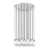 Light reflection plays an enduring role in the design factor of a light fixture with an authentic organic personality. Glam goes a bit easy with this 27-light rounded chandelier representing tempered minimalism as it delivers versatility and artistry. Marvel at the radiance of teardrop glass shades dangling in a circle at graduated lengths from a round brushed nickel finish metal canopy, becoming a focal point in a dining room, living space, or entryway.