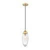 - This one-light pendant is fashioned for bridging old and new, featuring a linear down rod and canopy in warm rubbed brass finish iron.