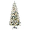 CAPHAUS 4.5-ft Pre-Lit LED Flocked Slim Pencil Tree Artificial Christmas Tree with 150 Twinkling Lights and Foldable Stand