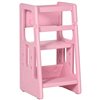 Qaba 2 Step Pink Toddler Kitchen Helper Stool with Adjustable Height Platform and Safety Rail