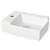 It features a rectangle shape. This vessel set is designed to be installed as a wall mount vessel set. It is constructed with ceramic and it comes with an enamel glaze finish in white colour. It is designed for a 1 hole faucet.