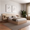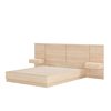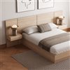 This elegant queen bed redefines luxury, featuring an opulent headboard with integrated extension panels and floating nightstands, all highlighting the exquisite beauty of natural oak. Designed to evoke a sense of awe, this piece perfectly integrates a rare high-end appearance with contemporary Zen aesthetics. Crafted from high-quality engineered wood, the platform bed boasts centre supports and a hidden plinth base. The panel design of the headboard adds allure, while the nightstands offer convenient storage for bedside essentials. No box spring is required, and assembly is effortless with doorstep delivery included. Enjoy the ideal blend of style and functionality with this chic bedroom ensemble, backed by a one-year warranty for peace of mind.