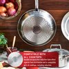 - Durable encapsulated induction base offers superior heat distribution and is compatible with all cooktops, including induction