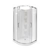 This modern shower kit maximizes space with a neo-round format that fits in the corner of most bathrooms. The polished chrome handles and trim are a contemporary complement to existing bath fixtures and hardware.