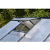 The Glory Greenhouse provides you with ideal conditions for enjoyable and fruitful gardening. The wide door and included accessories create optimal ventilation and help you maintain the required moisture and temperature levels. The high roof and tall eaves provide plenty of headroom, and more space to garden and trellis tall and leafy plants. The extra thick aluminum frame, with the included galvanized, rust-resistant perimeter steel base adds height, structural support and stability. It is aesthetically pleasing and elegant with its grey powder-coated robust aluminum frame. This glorious greenhouse is designed and built to last.