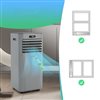 - This portable air conditioner has a high cooling capacity of 10,000 BTU, which can cool down an area of 350 sq ft with adjustable temperature between 60.8 °F -89.6 °F.