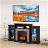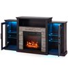 - The TV stand features 16-color LED light with 4 selectable modes, and the fireplace boasts 3-level adjustable brightness