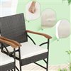 Costway 4-Piece Black PE Wicker Chairs and Acacia Wood Armrests with Soft Zippered White Cushion