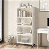 - The rolling microwave stand provides you with 5-tier ample storage space, which is fitted with semi-translucent doors for dust-proof storage