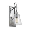 The Loras collection from Generation Lighting is a contemporary take on historic, industrial designs. Beautifully suspended from a fashionable frame, the transitional sconce has a clear seeded glass shade that adds rustic charm to this vintage-inspired silhouette to create contrast and update the look. Exposed bulbs are central to the design theme so Edison-style bulbs are a perfect choice. Number of Bulbs Required: 1 Maximum Wattage: 75W Light Bulb Base: E26 (Medium) Shown with a vintage Edison-style bulb (not included) Damp Rated for use in sheltered, but damp environments like bathrooms or kitchens Outlet to bottom: 10-in