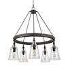 Loras 5-Light Chandelier The Loras Collection from Generation Lighting is a contemporary take on historic, industrial designs. This transitional chandelier features multiple corded pendants beautifully suspended on a timeless frame. Glass shades add more rustic charm to this vintage-inspired silhouette. Number of Bulbs Required: 5 Light Bulb Base: E26 (Medium) Maximum Wattage: 60W