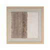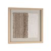 The 24 x 24-in shadow box features two contrasting textures side by side within a neutral colour palette. Made using hand laid paper pulp, the textures are visually intriguing as it plays with light and shadow, potentially evoking various interpretations or emotions from the viewer. The polycomposite frame radiates a sense of warmth and richness, enveloping the artwork in a subtle elegance, all beautifully showcased behind glass. The piece’s exploration of tactile qualities within a minimalist approach can make a powerful statement in any room setting.