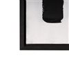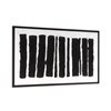 This abstract canvas, with its bold vertical black strokes set against a white backdrop and encased in a black polycomposite frame, offers a minimalist yet profound visual contrast. The rhythmic pattern of the strokes invites personal interpretation, adding to its allure. Measuring an impressive 40" x 63", it commands attention as a centrepiece, its elegant presence enriching any space it occupies, making it a captivating and thought-provoking element of any room.