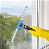 This window squeegee's efficient and convenient design is a must-have for establishments looking to provide a good first impression to incoming guests. The handle is made of durable plastic and features a comfortable ergonomic design to reduce user fatigue. The natural rubber blade provides streak-free cleaning for a welcoming atmosphere at your restaurant, cafe, or office. Replacing the natural rubber blade on this squeegee is as easy as it gets. Simply flip the quick-release flap up, slide out the old blade, and replace it with your new one before flipping the quick-release flap down again for a reliably firm grip on the blade. Be sure to always replace the blade with the first sign of rounding, abrasions, or worn corners, and be sure to clean and wipe dry your squeegee before storing.