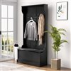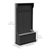 HOMCOM Black MDF 3-in-1 Entryway Hall Tree w/ Storage Bench and 5 Metal Hooks