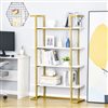 HOMCOM White and Gold Metal 4-Shelf Ladder Bookcase