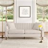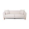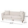 Refresh your living room with this modern 3-seat sofa that perfectly balances comfort and style. Featuring deep channel stitching along the back and arms, sloped armrests, and elegant tapered legs, this sofa brings a touch of sophistication to any space. Generously upholstered with plush cushions and paired with two matching accent pillows, it offers cozy support while maintaining a sleek, refined look. Whether used for lounging, entertaining, or as a statement centerpiece, this sofa is designed to elevate your home with timeless appeal.