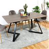 The unique design of the sled legs adds a freshness to the daily use of this dining table. The metal legs make the table structure very strong and durable. The table top is wood veneer and looks very tasteful. This dining table is suitable for small spaces. It is very convenient to move and can be used anywhere.