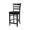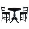 International Concepts 36-in Round Counter Height Extension Dining Table w/ Leaf and 2 Emily Counter Stools - Black