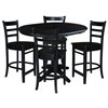 International Concepts 36-in Round Extension Dining Table w/ 4 Emily Counter Height Stools - Black