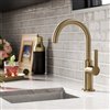 This elegant faucet by Kraus(R) features a clean silhouette with gooseneck spout that creates a stylish focal point for any bar, prep, or entertainment area. The compact modern design is perfect for smaller kitchens where space is at a premium, and pairs perfectly with the OlettoSeries kitchen faucets KPF-2820 and KPF-2821 for a cohesive look in larger kitchens. Designed for ease of use, the ergonomic comfort-grip handle operates with 90° forward rotation, allowing for smooth operation as well as installation flexibility in spaces with limited backsplash clearance. The spout swivels 360° for total access to every part of the sink, allowing you to redirect the flow of water as needed.