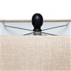 - The rectangular beige linen shade softly diffuses light, creating a warm and inviting ambiance