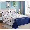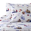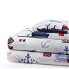 Marina Decoration 4-Piece 600-Thread Cotton/Polyester Full Bed Sheet Set - Blue and White Nautic Pattern