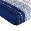 - Modern nautical pattern with navy sailboats, seagulls, flags, anchors, and compasses on a white base. Matching print on the pillowcase