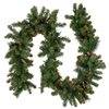Pre-decorated wreaths and garlands are a great way to spruce up your home for the holiday season without all the hassle of decorating them yourself. This green pine garland is pre-lit and accented with gold tips and pinecones. Will go great with most traditional holiday home decor and can be used for years to come! Product Features: Pre-lit with 50 clear lights. Bulb size: mini. 220 mixed tips. 4" wide tips. Bendable wire center allows for you to shape the garland any way you desire. Green metal hooks on each end for easy hanging. Additional Product Features: Mixture of traditional green two-tone PVC tips and long needle pine. Accented with pine cones and lightly dusted gold sparkling glitter. Light sets on the garland are UL listed for indoor or outdoor use however the garland itself is recommended for indoor use. If one bulb burns out the rest will stay lit. Lights are equipped with Lamp Lock feature which makes them replaceable interchangeable and keep them from falling out. Contains end-to-end connectors which allow you to connect multiple lighted items together (not to exceed 210 watts). Comes with replacement bulbs and spare fuses. Dimensions: 9' long x 12" wide. Material(s): PVC/plastic/metal/glass bulbs/wire/glitter.