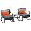 Outsunny 3-Piece Wicker Outdoor Rocking Bistro Set with Cushions