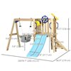Transform your backyard into a fun play zone for your child with the compact Outsunny swing set with slide, swing, and fort. This mini wooden swing set has several play features for kids, such as a captain's wheel, telescope, and mailbox. Able to withstand 220 lbs. (100 kg), the toddler swing set makes it easy for your child to enjoy playtime with their friends. All this combined means that this playscape for the backyard allows kids set sail on endless adventures for hours of imaginative fun.