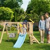 - Includes a swing, slide, and fort for active and creative play