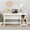 Whether you’re working from home or studying at home, this transitionally styled desk by Prepac(R) is a great option. It is designed with a side compartment suitable for a computer CPU, however with an adjustable shelf, this is also the perfect spot for video game consoles, books or anything else you need to store. The desktop surface is extra-large to accommodate multiple devices or for spreading out papers and books. There are two covered, round grommets for wire management of multiple electronic devices or desk lamps and the privacy panel is set in from the back to allow more access to outlets. All components on the back of the desk are finished so that it can be placed against the wall or in the center of a room. With decorative side and top moldings, this desk matches the Sonoma, Salt Spring and Fremont Collections.