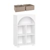 RiverRidge Home Arched 4-Cubby Shoe Organizer Cabinet w/ 2 Taupe Fabric Bins - White
