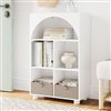 This handsome arched shoe storage cabinet transforms cluttered spaces into sophisticated entryways. The distinctive curved design and crisp white finish create an upscale look, while four spacious cubbies provide smart storage for up to 15 pairs of shoes. At 23-in tall, this shoe closet organizer maximizes vertical space without overwhelming your hallway. The durable MDF construction supports up to 95-lb total, making it reliable for daily use. The 2 included 5-in fabric storage bins enhance organization and introduce pops of colour to your space. The included wall anchoring hardware ensures stable, secure placement, while the smooth white finish resists daily wear. This tall shoe rack organizer features reinforced shelving that holds up to 15-lb per cubby and 20-lb on the top shelf.