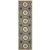 The Four Seasons area rugs exhibit country floral and geometric patterns inspired by classic textile arts. This cement and blue rug measures 2.3 x 6 feet.