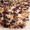 - Hand-tufted with synthetic fabric cutouts creating a shag surface of taffeta and sheer textures