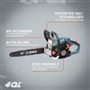 The SENIX CS4QL-L3 chainsaw features a 46 cc 4-cycle engine that does not require mixing gas and oil but remains lightweight and powerful. With a 4-cycle engine, there is no need to mix gas and oil. Four-cycle engine has lower emission and is more environmentally friendly than 2-cycle. Full crank engine design provides longer engine life, lower vibration and easy maintenance. The chainsaw features 16-inch Oregon bar and chain for smooth cutting and auto choke and compression release for easy starting. The auto oiler provides continuous lubrication to the bar and chain to ensure high performance and trouble-free cutting. The chain brake stops the chain in the event of a kickback to provide an extra measure of safety to the operator. Includes bar cover. All SENIX 4QL gas powered products are backed by a 2-year limited warranty for your peace of mind.