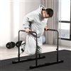Elevate your fitness routine with the Soozier dip bar, adjustable from 31.5" (80 cm) to 39.4" (100 cm) across four levels. Its 19.7" W x 27.6" D (50 x 70 cm) base features non-slip feet for utmost stability, and the 24.4" (62 cm) long handles offer a secure, dry grip. Great for dips, push-ups, and more, these portable parallel bars are crucial for a professional workout at home.